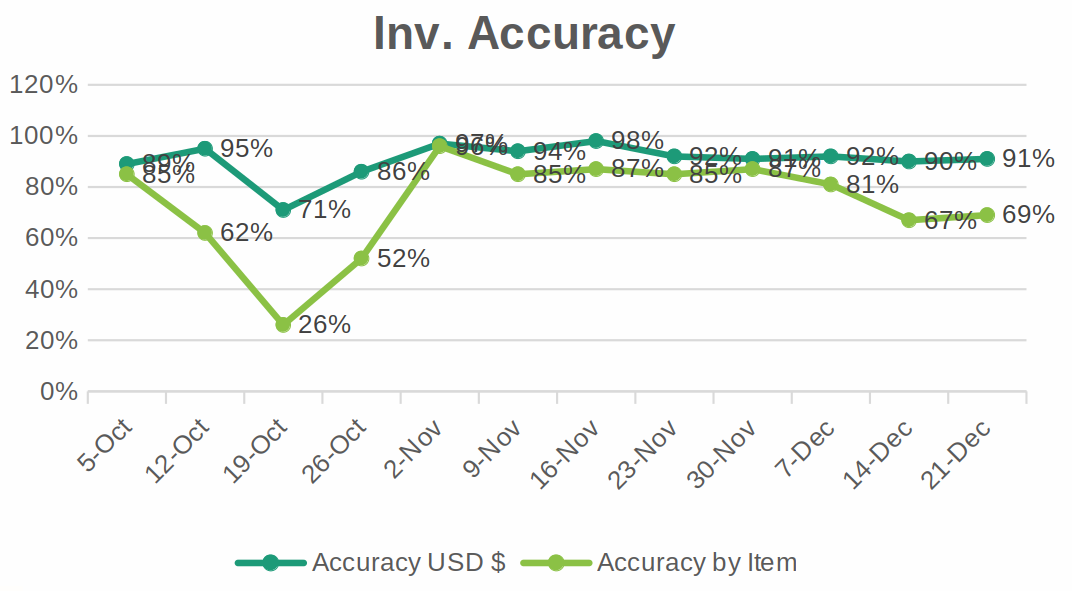 Remove major offenders and roadblocks that directly affects Inventory Accuracy rate
